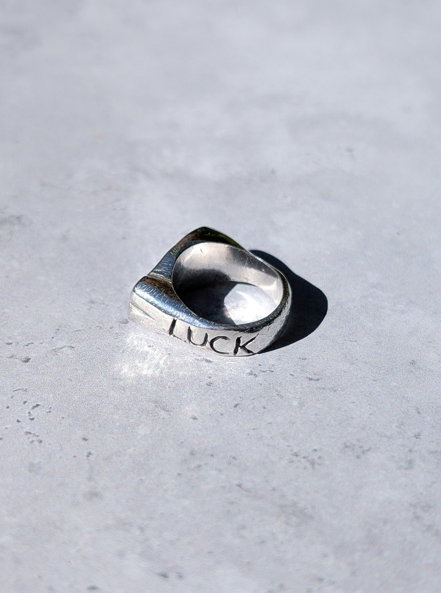 This ring is made to size, so please let me know the size you’d like using the drop down menu. The sizing chart is included in the images. The fish has “LUCK” carved on the side, if you’d like to remove this and leave the band plain please let me know in the comment box on the checkout page.